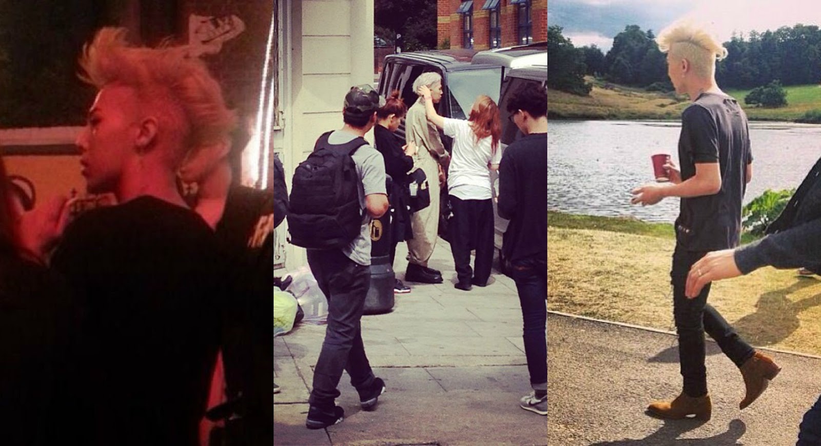 G-Dragon was spotted all over London, England as he filmed an mv for a new single from his upcoming album. GD made sure to tweet and Instagram pics galore but fans were also on hand to flood social media sites with photos of him featuring his new blonde rockabilly mohawk. Loving the new 'do, Jiyong.